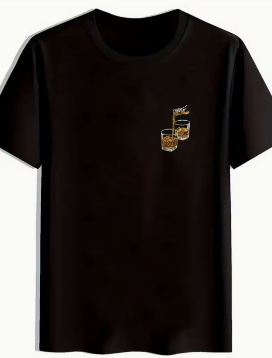 T-shirt décontracté à manches courtes avec col rond et poche design, parfait pour l'été et les sorties entre amis. Idéal pour les amateurs de whisky et de scotch, pour un style fun et relax au bar ou à la maison.
