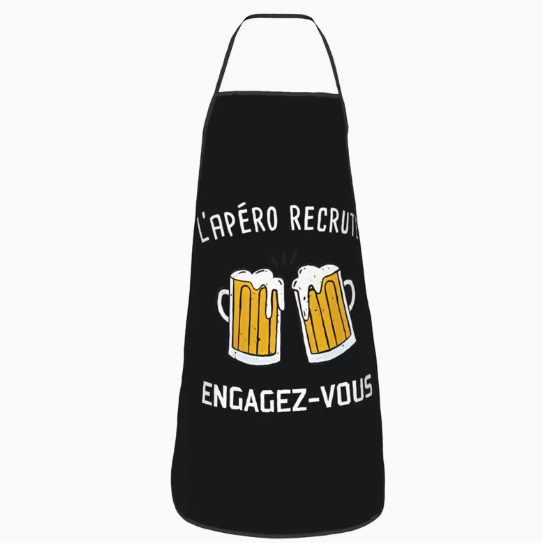 Tablier unisexe original avec design humoristique autour de l'alcool et de l'apéritif. Parfait pour la cuisine, la pâtisserie ou les soirées entre amis. Confortable, pratique et prêt à offrir comme cadeau fun pour adultes.